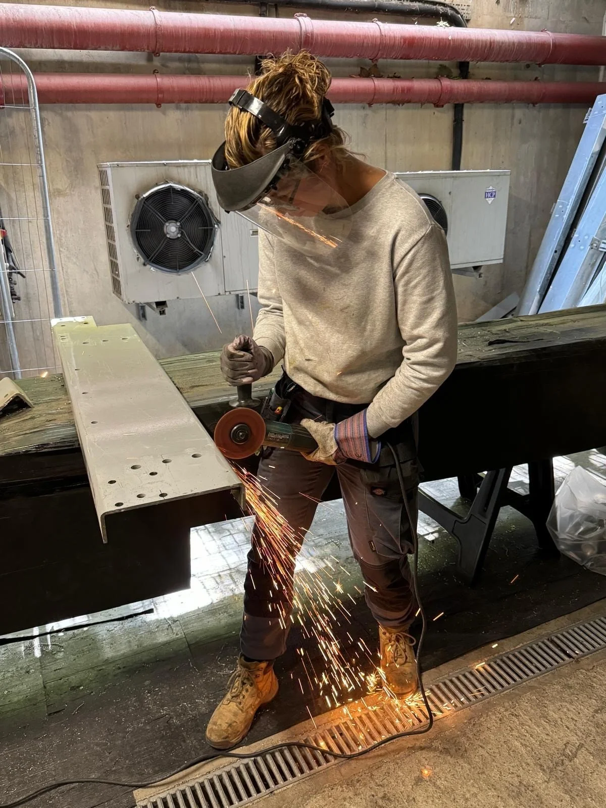 Having completed my university degree, I went onto my first office job in a Human Resources department for The Big Issue. My boyfriend was working in the lift industry and we needed more money to help with the care of his mother who had Alzheimer’s. He took on motor room guarding jobs, drawing and fitting them. When we both finished our day jobs, I would meet him on site and help. I knew nothing (and I mean nothing!). I would get spanners and screwdrivers mixed up (don’t ask). I didn’t have a clue what any tool was called, let alone how to use them. I was the epitome of ‘Super Green’.