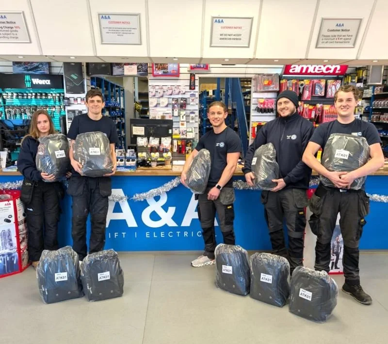 Everyone at Target Lifts Ltd would like to say a massive thank you to Luis Fernandes, MBA, MSc Nick Forbes A&A Electrical Ltd. for supplying our Apprentices and Mates with new tool kits to set them on their way to becoming qualified lift engineers.