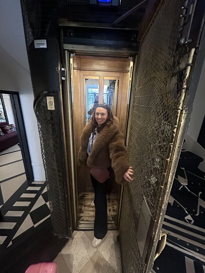 In Ellie’s words: Tucked inside a beautiful old building near the Moulin Rouge was the smallest lift I’ve ever seen. And it reminded me of something we all know…
