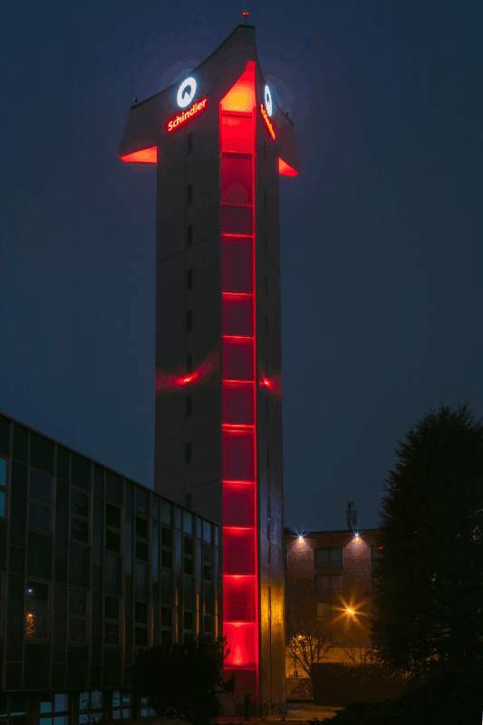 At the end of 2025, restoration work was completed on the Schindler Tower in Concorezzo (Italy), which for sixty years has been one of the iconic symbols of the area and an example of brutalist industrial architecture, where a new lighting system was also installed. The renovation is part of a larger redevelopment project for the Italian headquarters of the Swiss multinational, one of the global leaders in the supply of elevators and escalators.